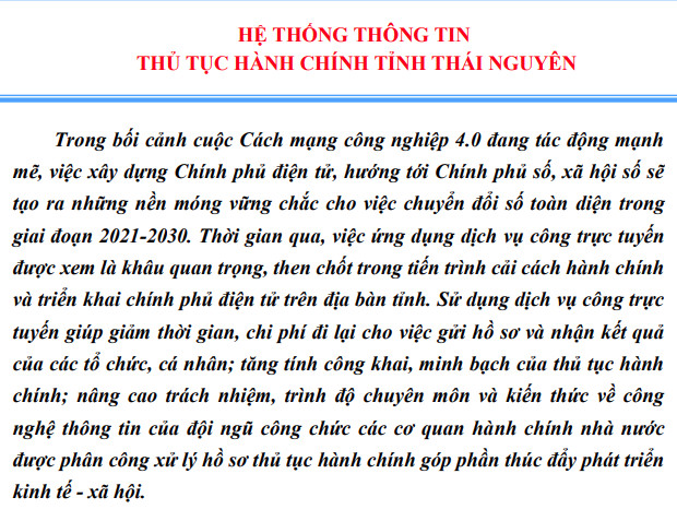 Báo cáo chuyên đề CĐS tuần 17/2023: HỆ THỐNG THÔNG TIN THỦ TỤC HÀNH CHÍNH TỈNH THÁI NGUYÊN
