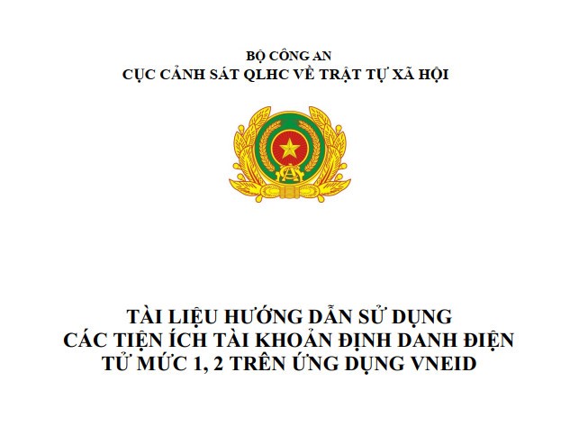 Tài liệu hướng dẫn sử dụng các tiện ích Tài khoản định danh điện tử mức 1, 2 trên ứng dụng VNeID
