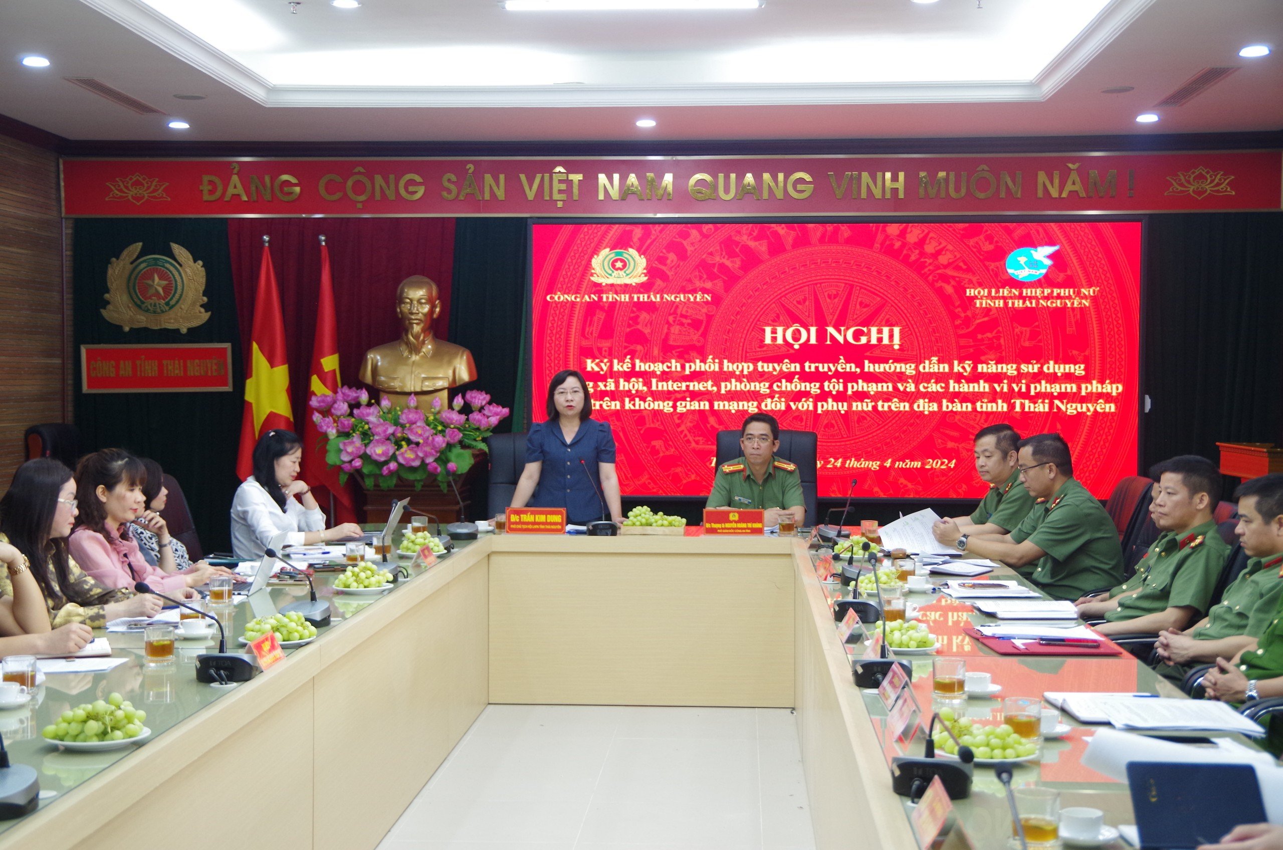 Nhằm nâng cao nhận thức của cán bộ, hội viên phụ nữ về vị trí, vai trò, ý nghĩa, tầm quan trọng của việc sử dụng mạng xã hội và Internet, góp phần đảm bảo an toàn thông tin, an ninh mạng; huy động sự vào cuộc mạnh mẽ, trách nhiệm của lực lượng Công an, cán bộ, hội viên trong tuyên truyền, hỗ trợ hội viên phụ nữ sử dụng mạng xã hội an toàn, phòng chống tội phạm và các hành vi vi phạm pháp luật trên không gian mạng, sáng ngày 24/4/2024 tại trụ sở Công an tỉnh Thái Nguyên, Hội LHPN tỉnh và Công an tỉnh tổ chức hội nghị ký kết Kế hoạch phối hợp tuyên truyền, hướng dẫn kỹ năng sử dụng mạng xã hội, Internet, phòng chống tội phạm và các hành vi vi phạm pháp luật trên không gian mạng.