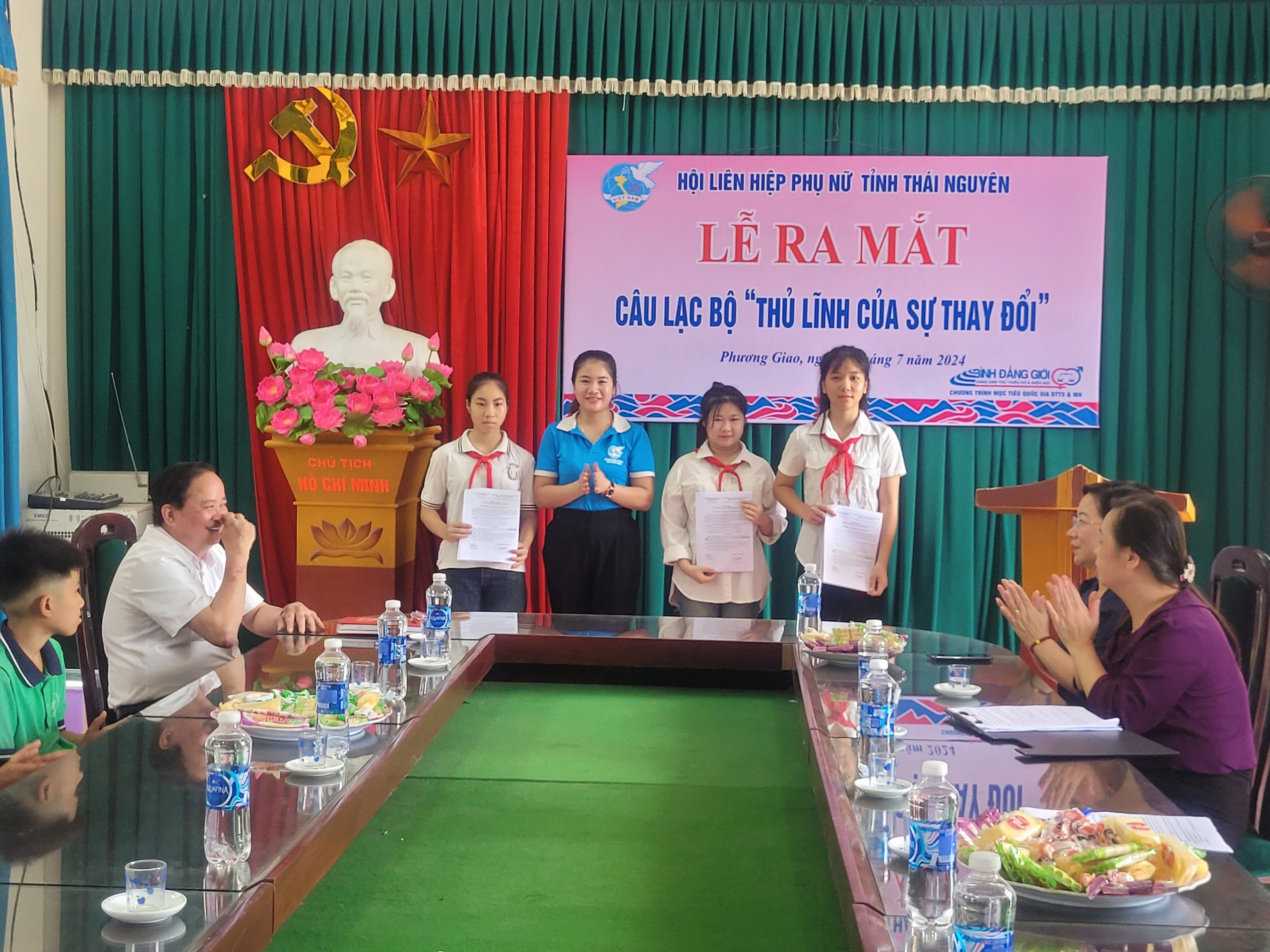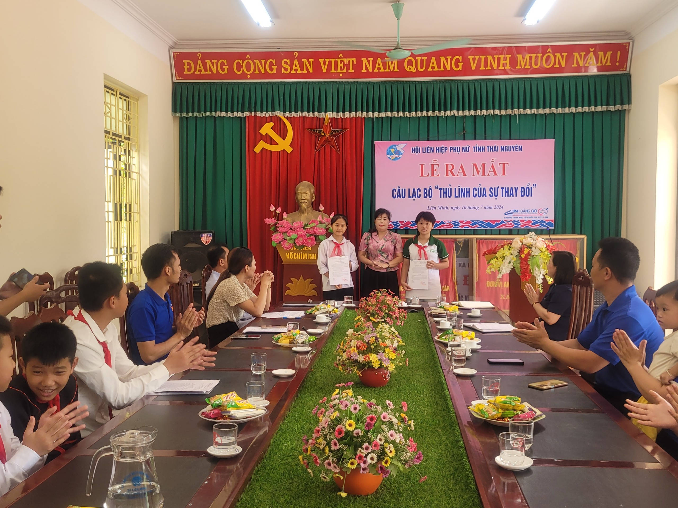 Thực hiện Kế hoạch triển khai hoạt động Dự án 8 cấp tỉnh năm 2024 “Thực hiện bình đẳng giới và giải quyết những vấn đề cấp thiết đối với phụ nữ và trẻ em”, trong ngày 10/7/2024, tại xã Liên Minh và xã Phương Giao, huyện Võ Nhai, Hội LHPN tỉnh tổ chức ra mắt 05 câu lạc bộ “Thủ lĩnh của sự thay đổi” tại 02 xã. Dự Lễ ra mắt mô hình có đồng chí Trần Kim Dung, Phó Chủ tịch Hội LHPN tỉnh; lãnh đạo Hội LHPN huyện Võ Nhai; lãnh đạo cấp uỷ, chính quyền, Hội LHPN xã Liên Minh và xã Phương Giao; Dẫn trình viên, Ban chủ nhiệm và thành viên các câu lạc bộ.