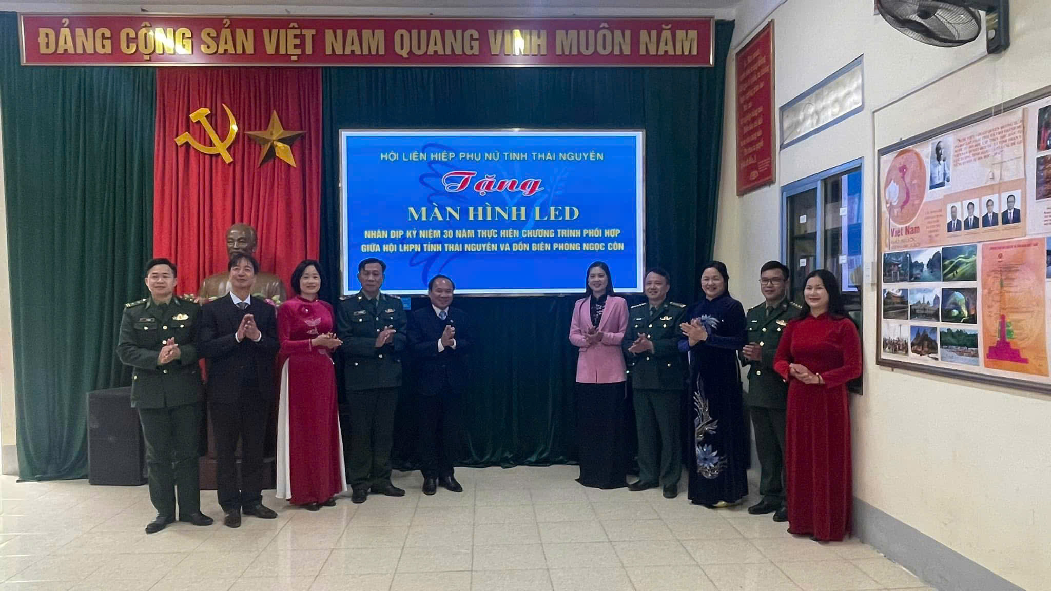 Trong khuôn khổ Chương trình tổng kết 30 năm, Hội LHPN tỉnh Thái Nguyên đã tặng 01 màn hình Led hội trường cho Đồn Biên phòng Ngọc Côn; Hội phối hợp với Đồn Biên phòng Ngọc Côn và một số cơ quan, đơn vị của huyện Trùng Khánh đã tổ chức “Gian hàng 0 đồng”, khám chữa bệnh, cấp phát thuốc miễn phí và tặng 100 suất quà cho các hộ gia đình chính sách, gia đình hội viên hội phụ nữ nghèo, các em học sinh có hoàn cảnh khó khăn vươn lên trong học tập thuộc 3 xã Ngọc Côn, Ngọc Khê, Đình Phong và các em là con nuôi Đồn Biên phòng và trong Dự án “Cán bộ, chiến sĩ quân đội nâng bước em tới trường”.