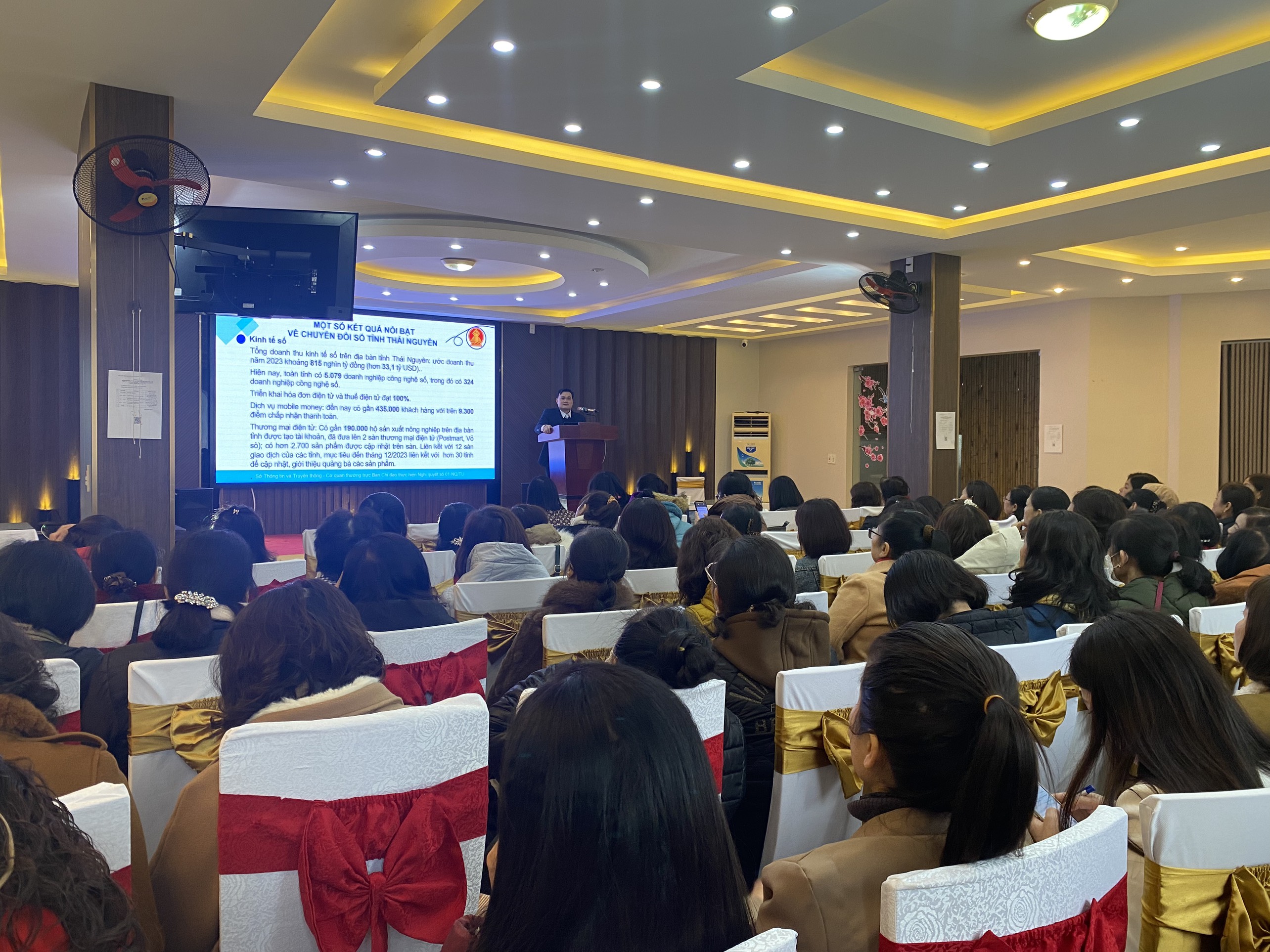 Tại Hội nghị, đồng chí Chủ tịch Hội LHPN tỉnh đã phát động chủ đề năm 2024 “Đẩy mạnh ứng dụng công nghệ thông tin trong hoạt động Hội” gắn với thực hiện khâu đột phá “Tăng cường ứng dụng công nghệ thông tin và thực hiện chuyển đổi số trong hoạt động Hội” nhiệm kỳ 2021-2026; Kế hoạch số 222/KH-UBND, ngày 29/12/2023 của Uỷ ban nhân dân tỉnh Thái Nguyên về chuyển đổi số tỉnh Thái Nguyên năm 2024; các đại biểu được nghe báo cáo viên Sở Thông tin và Truyền thông chia sẻ các nội dung liên quan đến công tác chuyển đổi số đối với phụ nữ.