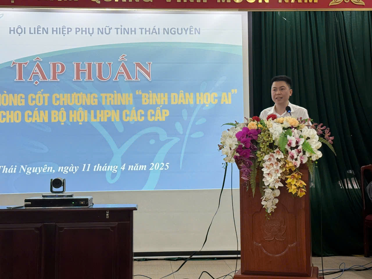 Sáng ngày 11/4/2025, Hội LHPN tỉnh Thái Nguyên đã tổ chức khai mạc lớp tập huấn giảng viên nòng cốt chương trình “Bình dân học AI” cho cán bộ Hội các cấp, theo hình thức trực tiếp kết hợp trực tuyến, với sự tham gia của hơn 400 đại biểu tại 27 điểm cầu trong toàn tỉnh. Dự và chỉ đạo Hội nghị, đồng chí Phạm Thị Thu Thủy - Ủy viên Ban Chấp hành Trung ương Hội LHPN Việt Nam, Tỉnh ủy viên, Chủ tịch Hội LHPN tỉnh đã phát biểu chỉ đạo, nhấn mạnh vai trò tiên phong của phụ nữ trong chuyển đổi số và ứng dụng AI trong công việc, đời sống.