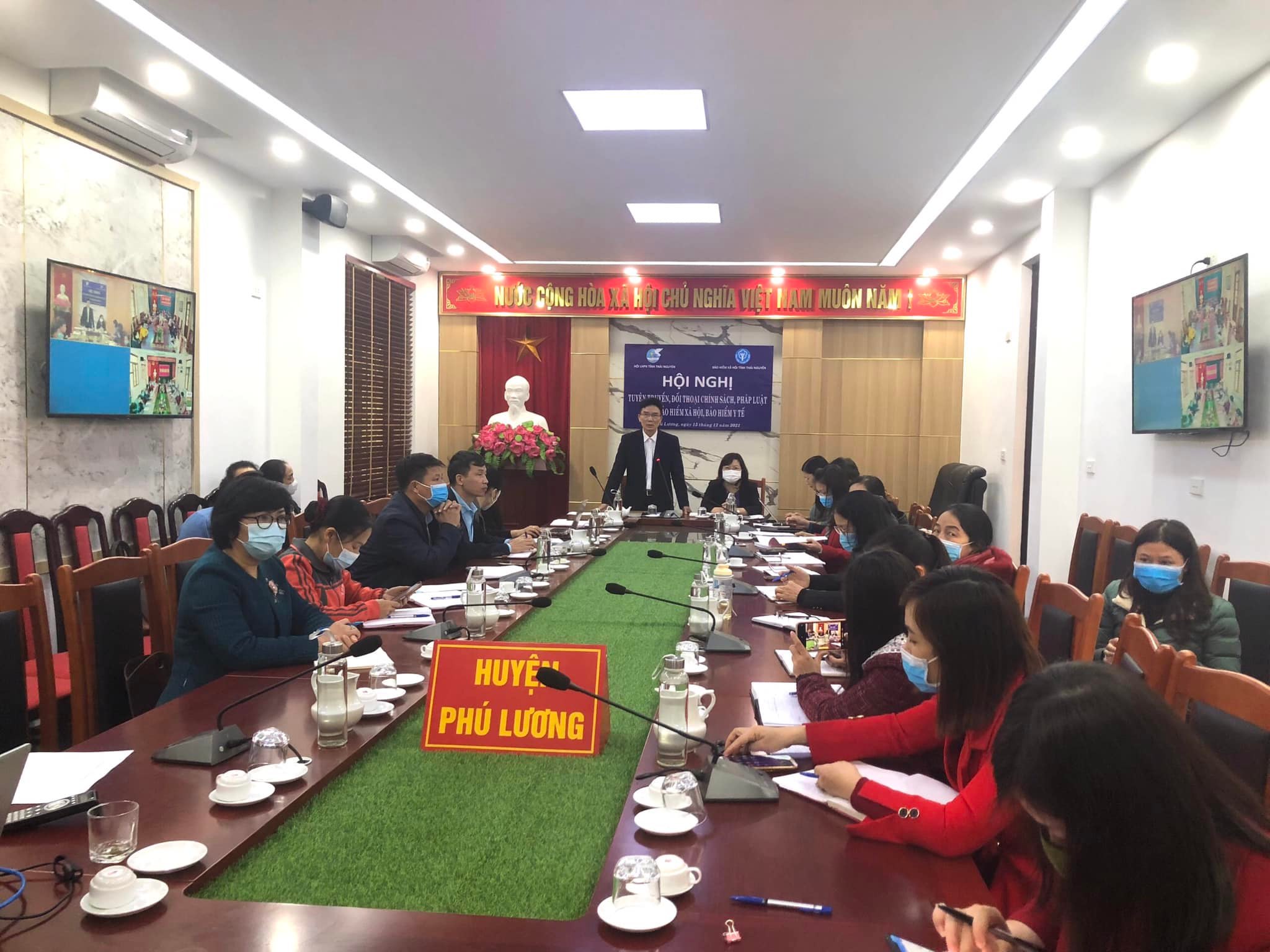 Ngày 15/12/2021 Hội LHPN tỉnh phối hợp với Bảo hiểm xã hội tỉnh tổ chức hội nghị tuyên truyền, đối thoại thực hiện chính sách, pháp luật về bảo hiểm xã hội, bảo hiểm y tế tại huyện Phú Lương với gần 150 người tham dự.