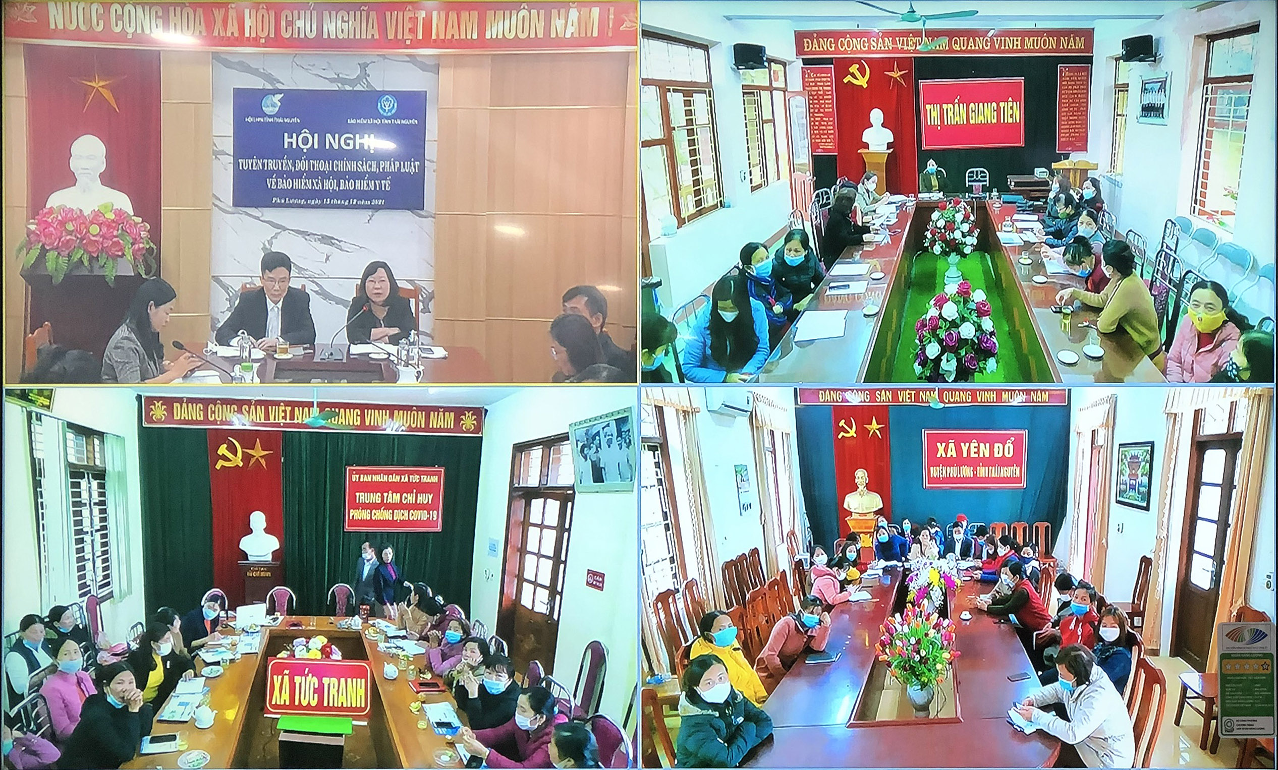 Hội nghị được tổ chức bằng hình thức trực tiếp và trực tuyến, kết nối điểm cầu tại UBND huyện Phú Lương với 3 điểm cầu tại thị trấn Giang Tiên, xã Tức Tranh, xã Yên Đổ. Chủ trì hội nghị và trực tiếp tham gia đối thoại với cán bộ, hội viên, phụ nữ huyện Phú Lương có đồng chí Trần Kim Dung- Phó Chủ tịch Hội LHPN tỉnh, đồng chí Nguyễn Hồng Trường- Phó Giám đốc BHXH tỉnh và đại diện Sở Lao động TB&XH.